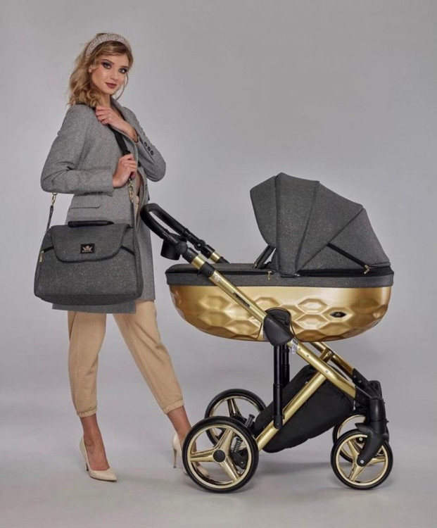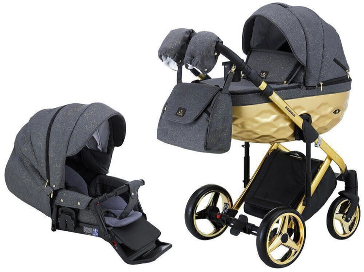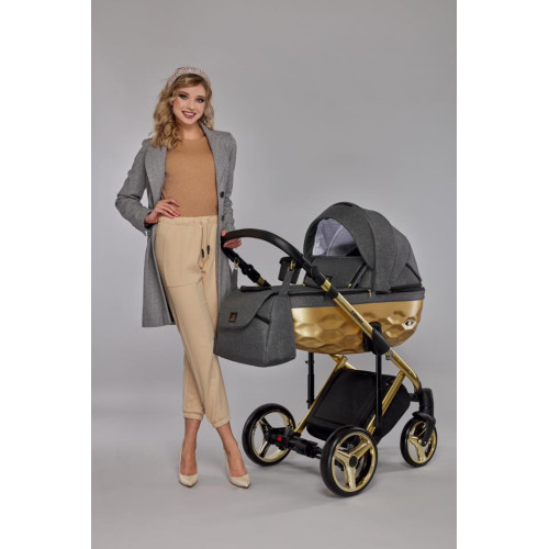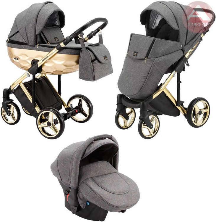 ست کالسکه طوسی طلایی 4 تکه آدامکس مدل CHANTAL STAR 1