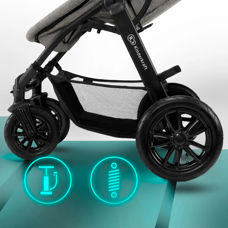 چرخ های بزرگ کالسکه 360 درجه می چرخند و به شما قابلیت مانور در هر سطح و جهتی را می دهند