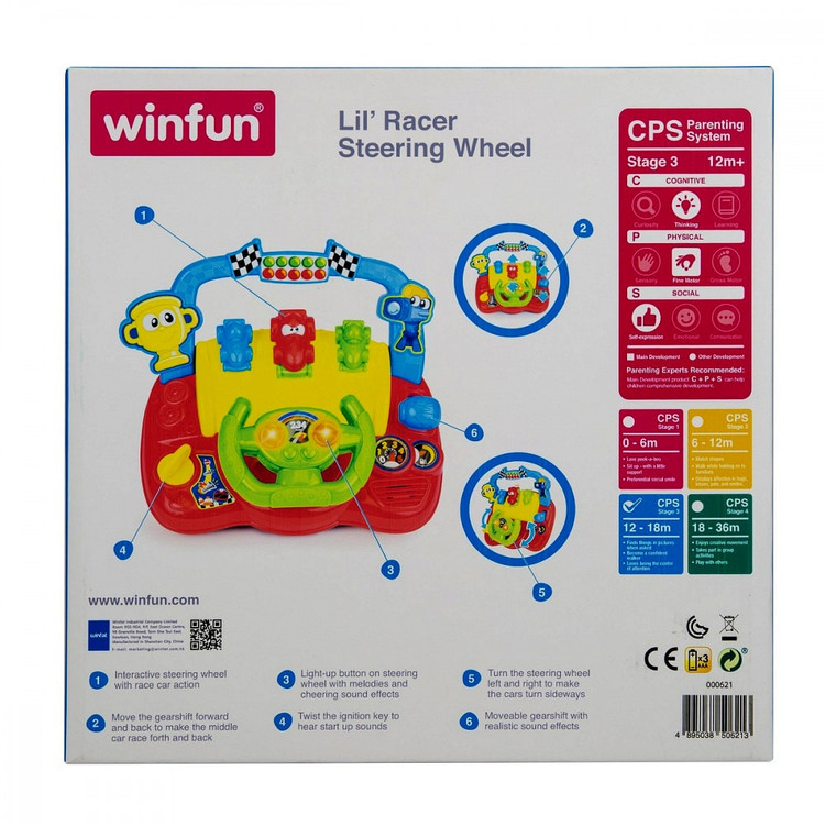 • دارای یک فرمان ماشین مسابقه، دکمه استارت، سه عدد ماشین مسابقه کوچک و دنده می باشد