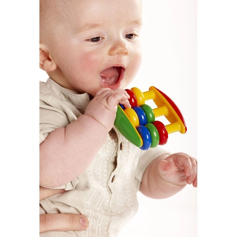 • تشویق به شمارش ساده با استفاده از قطعات چرتکه- حتی اگر نوزاد شما برای درک اعداد، سحبت و برقراری ارتباط کوچک باشد؛ این جغجغه به مرور زمان به تشخیص صدا و توسعه زبان کمک می کند.