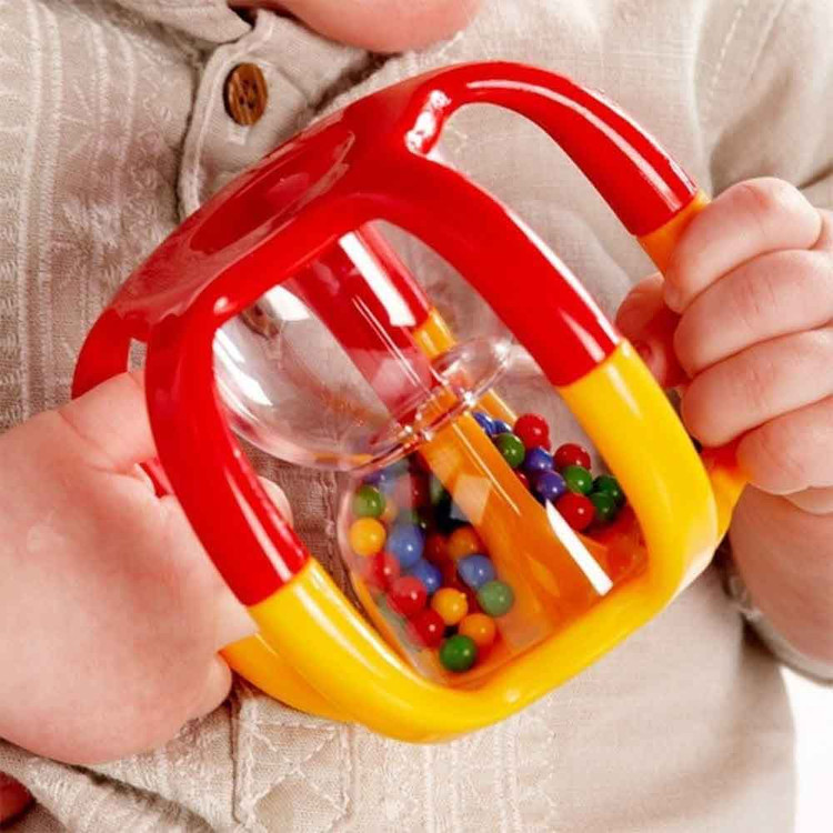 از کودک خود بخواهید جغجغه را به تنهایی در دست بگبرد و با آن بازی کند.