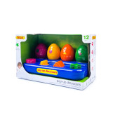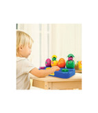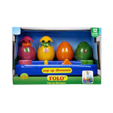 دارای 4 دکمه رنگی که د رصورت فشار دادن هر کدام یکی از بچه دایناسور ها بیرون می آید هم چنین هر کدام از این کلید ها دارای اشکال هندسی می باشد و به صورت ناخودآگاه نیز کودک شما در حال آموزش یاد گرفتن این اشکال هندسی می باشد. این امر کمک بسیار به تقویت هوش و تمرکز کودک می کند. رنگ های استفاده شده در این اسباب بازی دایناسور پرشی، رنگ های بسیار شاد و جذابی هستند که کودک شما را برای بازی جدب می کند و علاوه بر آن به قدرت تشخیص رنگ فرزندتون کمک میکند