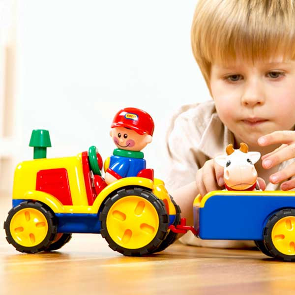 اسباب بازی را خودتان روشن کنید زیرا ممکن است کودک شما کمی برای اینکه به تنهایی ویژگی ها را کشف کند کوچک باشد. او را به خاطر تمام تلاش هایش تشویق کنیدو از او بخواهید تا صدای تراکتور را تقلید کندک