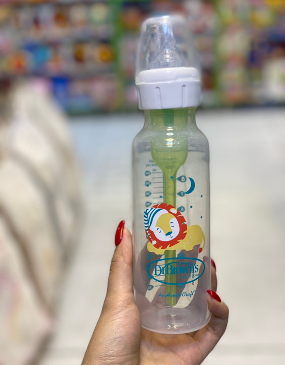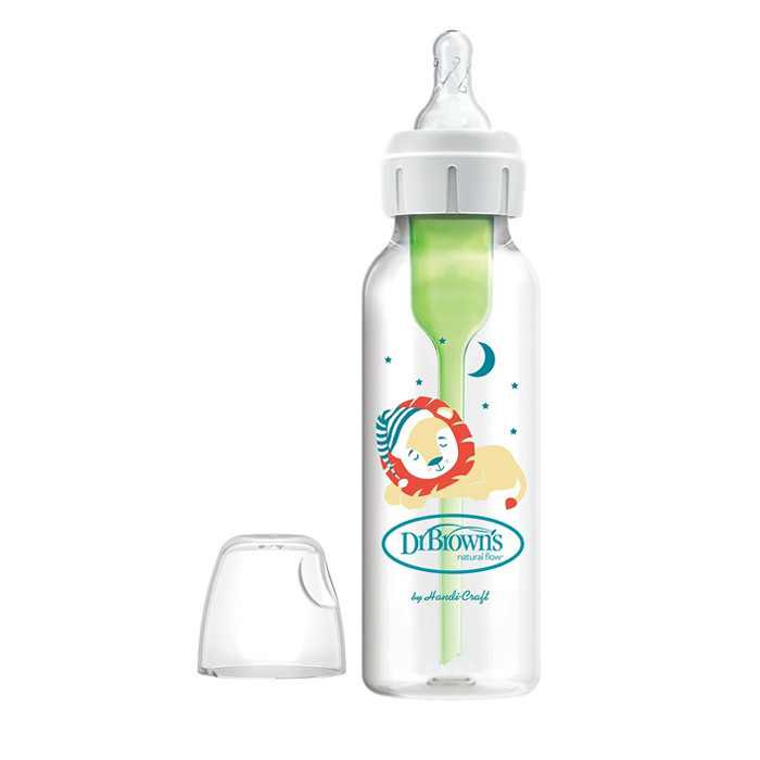 ویژگی شیشه شیر های آپشن پلاس دکتر براونز این است که هم می توانید شیشه شیر را با نی سبز رنگ داخل آن و هم بدون نی استفاده کرد. نی سبز رنگی که داخل شیشه شیر تعبیه شده است باعث می شود که هیچگونه جریان هوایی وارد معده نوزاد نشود و از دل درد و نفخ نوزاد جلوگیری می کند.