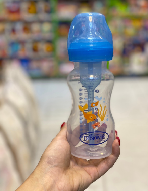 شیشه شیر طلقی پهن 270 میل آبی دکتر براونز اورجینال (سرشیشه پهن صفر ماه)