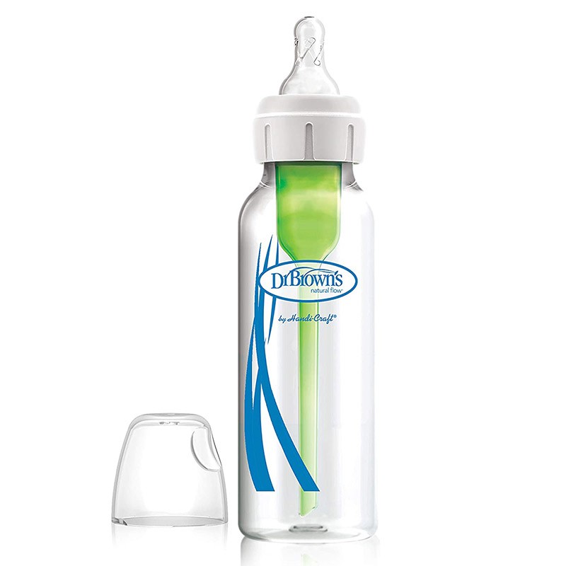 ویژگی شیشه شیر های آپشن پلاس دکتر براونز این است که هم می توانید شیشه شیر را با نی سبز رنگ داخل آن و هم بدون نی استفاده کرد. نی سبز رنگی که داخل شیشه شیر تعبیه شده است باعث می شود که هیچگونه جریان هوایی وارد معده نوزاد نشود و از دل درد و نفخ نوزاد جلوگیری می کند.