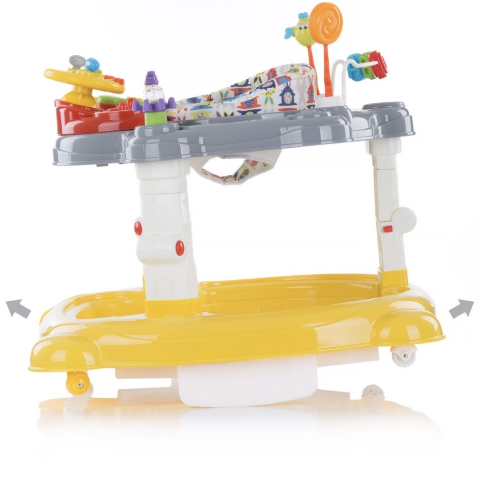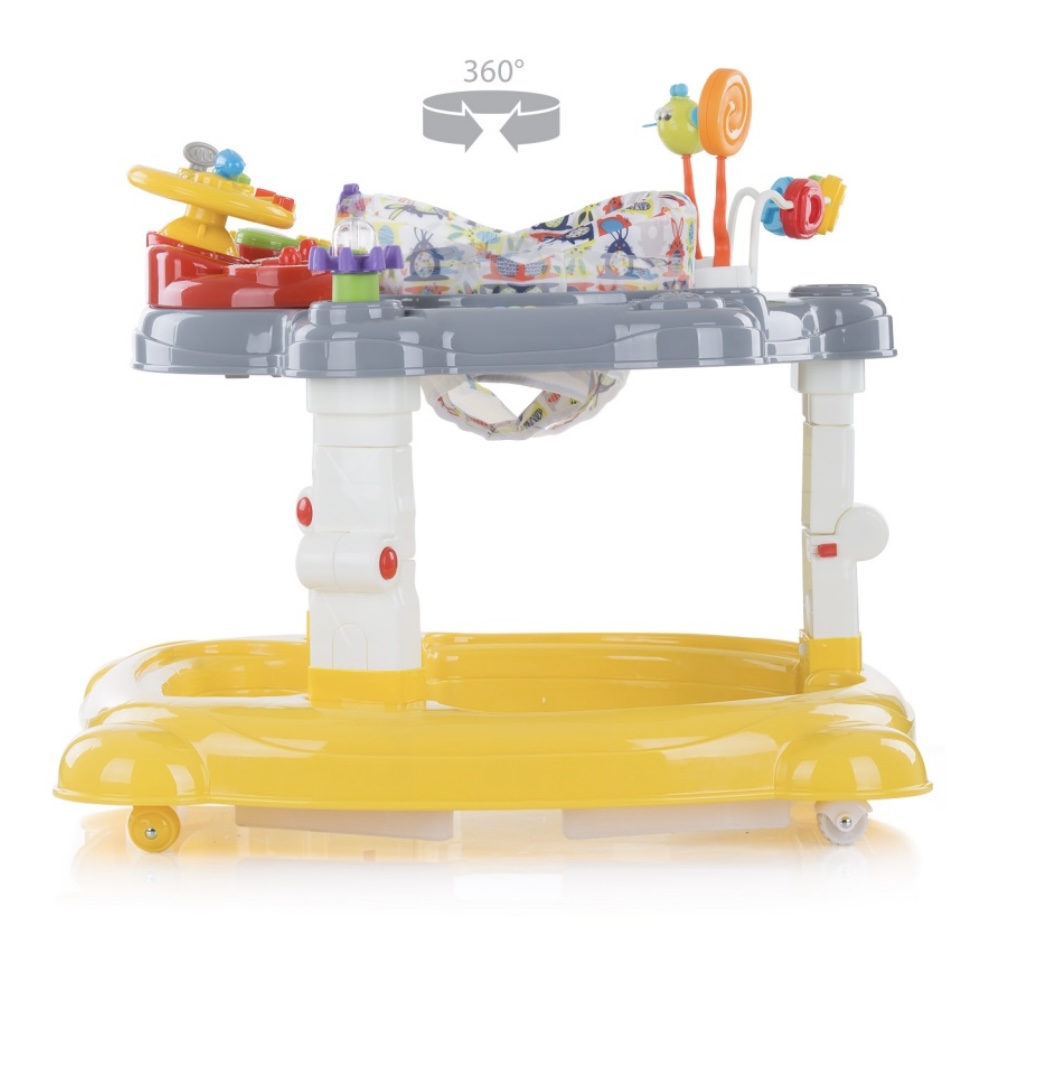 امکان چرخش نشمین روروئک چیپولینو تا 360 درجه مهیا است. این ویژگی باعث میشود کودک به راحتی به تمام وسایل بازی روی روروئک دسترسی داشته باشد. چرخهای این محصول به دو شکل متفاوت در روروئک پیاده شدهاند؛ به طوری که چرخهای جلو امکان چرخش 360 درجه دارند و چرخهای عقب فقط به صورت مستقیم حرکت میکنند.
