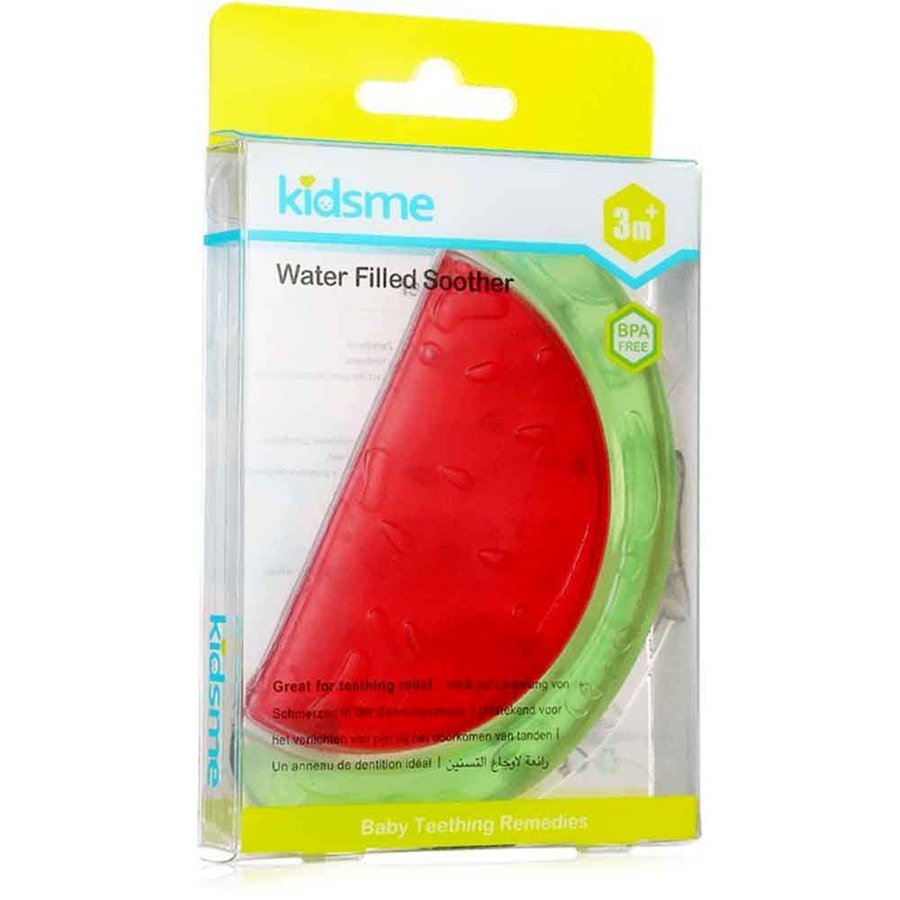 دندانگیر هندوانه KidsMe Water Filled Soother یکی از وسایل کاربردی برای نوزادان می باشد. این وسیله قابلیت خنک کنندگی داشته و در یخچال قابل نگهداری می باشد. از این دندانگیر جهت کاهش درد لثه ناشی از در آمدن دندان استفاده می شود. این دندانگیر حالت تمام سیلیکون دارد و داخل آن از مایع جهت خنک کردن پر شده است.