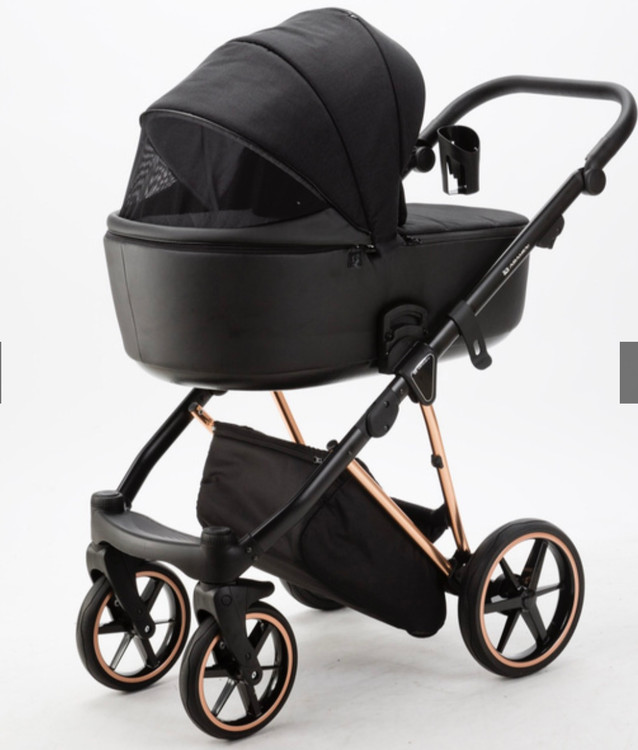 شامل : کالسکه ، کریر، کریکات ، ساک لوازم و پشه بند 2 عدد ، روکش زمستانی کالسکه و کریر، کاور باران ، دستکش